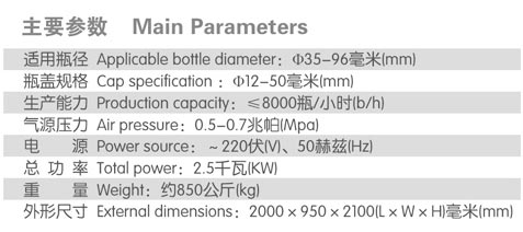 適用不同規格圓瓶、方瓶的外蓋自動旋合,具有結構緊湊、操作簡單,調整規格方便快捷的特點。