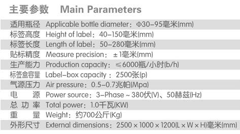 適用于圓形玻璃瓶、塑料瓶、聚酯瓶的連續紙標簽粘貼。貼標性能穩定、換標操作簡單。